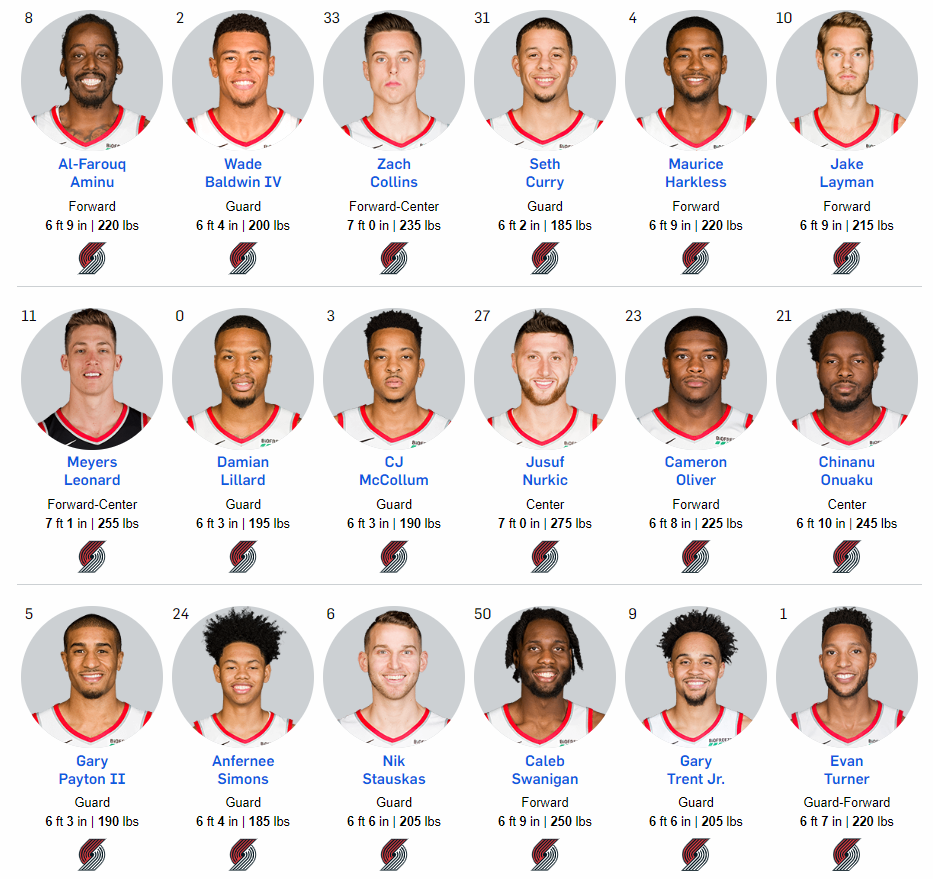 | Zach Collins | 57 | 18.2 | 6.8 | 4.3 | 0.9 | 0.4 | 0.8 | 1.0 |